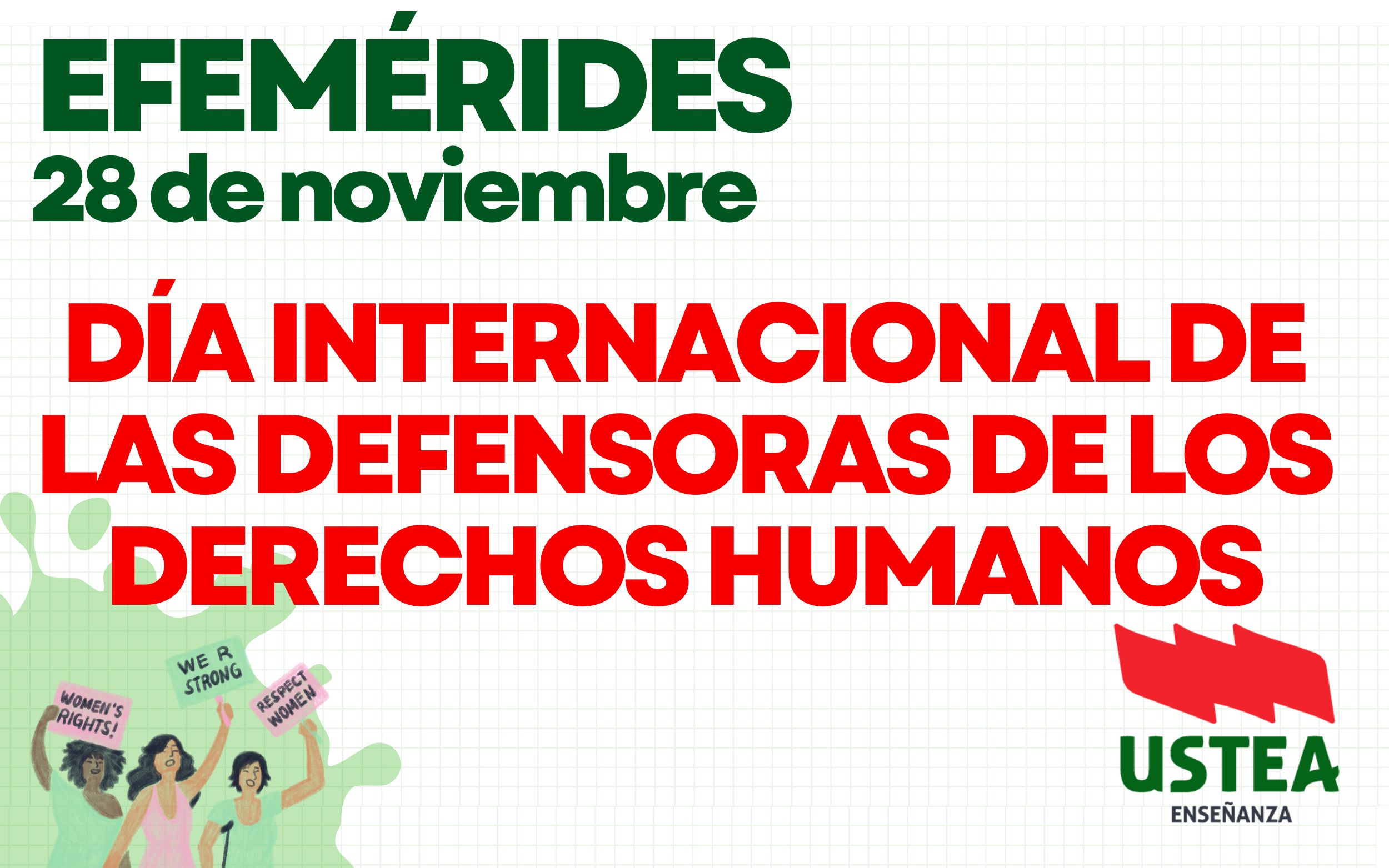 Cada 29 de noviembre, desde USTEA reivindicamos y celebramos el papel imprescindible de las Defensoras de Derechos Humanos: mujeres valientes, activistas, docentes, investigadoras, sindicalistas, madres, jóvenes y mayores que, desde distintos lugares del mundo, alzan la voz contra la injusticia, la desigualdad y la violencia patriarcal. Mujeres que arriesgan sus vidas por defender los derechos colectivos, la justicia social, la libertad y la dignidad de todos los pueblos.