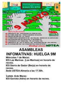 Almería: Asambleas informativas sobre la HUELGA 9 M