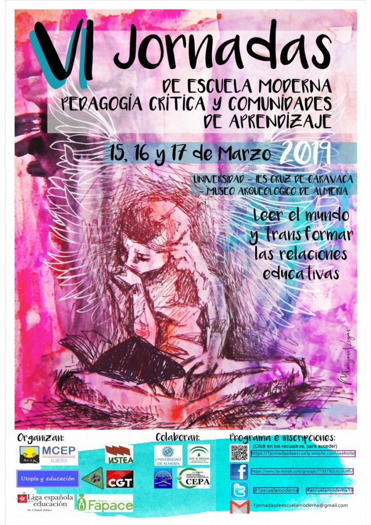 Desde la comisión organizadora de las VI Jornadas de Escuela Moderna, Pedagogía Crítica y Comunidades de Aprendizaje os invitamos a participar en nuestras jornadas, que tendrán lugar los próximos 15, 16 y 17 DE MARZO.