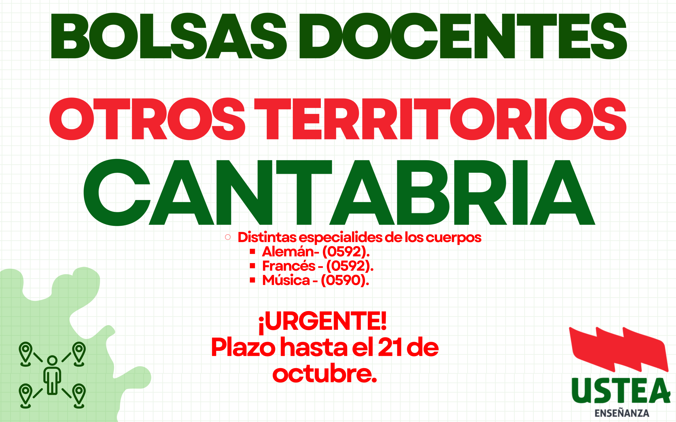La Consejería de Educación, Formación Profesional y Universidades del Gobierno de Cantabria ha publicado tres Resoluciones de convocatoria extraordinaria para la provisión urgente de puestos de personal docente interino en distintas especialidades.