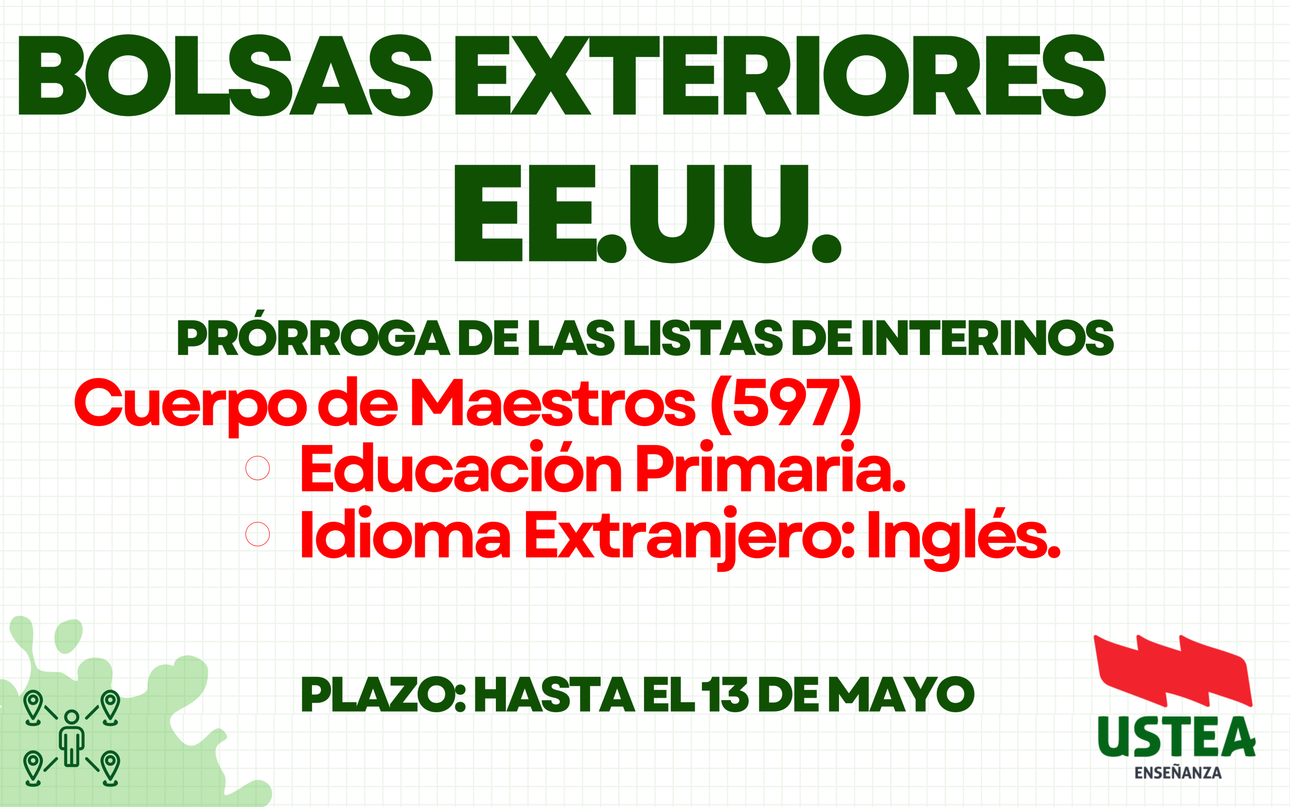 Desde USTEA Enseñanza os facilitamos el resumen detallado de la reciente resolución de la Consejería de Educación en EE. UU. y Canadá. Se confirma la prórroga de las listas de interinos para el próximo curso, una noticia de gran interés para el personal docente que aspira a plazas en el exterior. La presente resolución tiene por objeto exclusivamente la prórroga de las listas de aspirantes ya constituidas para el curso 2025/2026, sin que en ningún caso suponga la apertura de un nuevo procedimiento de formación de listas ni la incorporación de nuevas personas aspirantes.