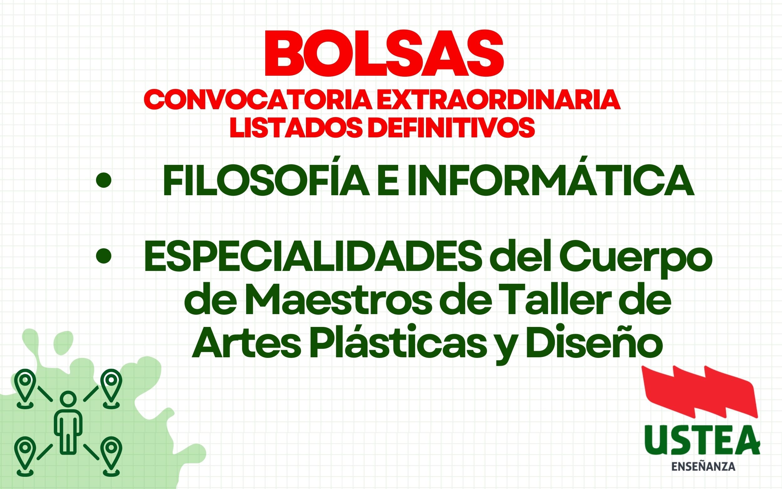 BOLSAS EXTRAORDINARIAS: Filosofía, Informática y Especialidades del Cuerpo de Maestros de Taller de Artes Plásticas y Diseño
