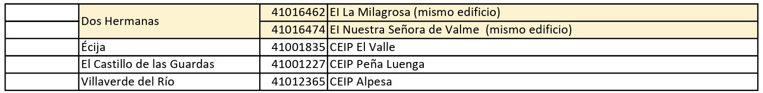 - Sevilla: 7 centros educativos