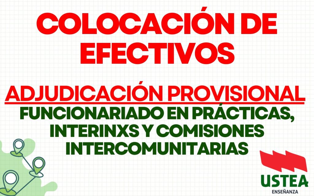 COLOCACIÓN DE EFECTIVOS. ADJUDICACIÓN PROVISIONAL PARA FUNCIONARIADO EN PRÁCTICAS, PERSONAL INTERINO Y COMISIONES INTERCOMUNITARIAS