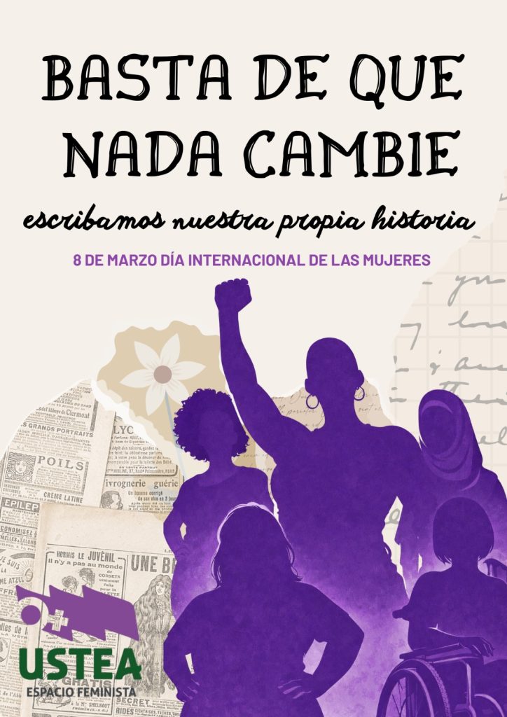 Desde el Espacio Feminista de USTEA, dirigimos nuestra lucha a demoler el sistema cisheteropatriarcal y capitalista que nos explota. Un sistema que nos niega la igualdad mediante un machismo estructural que nos cosifica, nos priva de derechos fundamentales, perpetúa la brecha salarial y consiente las violencias machistas en todas sus formas: feminicidios, misoginia y un sin fin de violencias simbólicas.