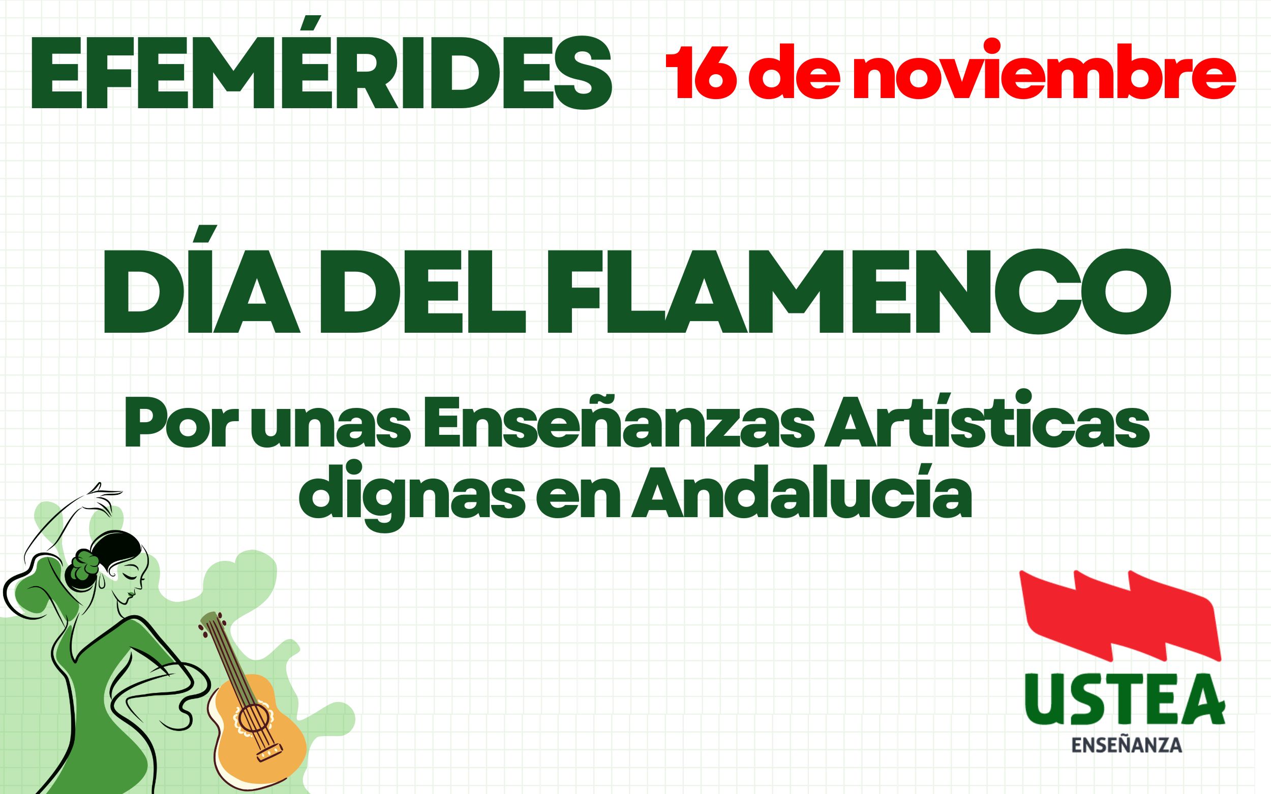 Desde USTEA Enseñanza celebramos el Día del Flamenco, reconocido por la UNESCO como Patrimonio Cultural Inmaterial de la Humanidad (2010), y reivindicamos su profunda raíz andaluza, popular y diversa. El flamenco es una expresión artística nacida de las clases trabajadoras, de los pueblos oprimidos y de la mezcla cultural que caracteriza a Andalucía. Su presencia en la escuela pública andaluza no debe ser un adorno folclórico, sino una herramienta pedagógica fundamental para comprender nuestra historia, nuestra identidad y nuestra realidad social.