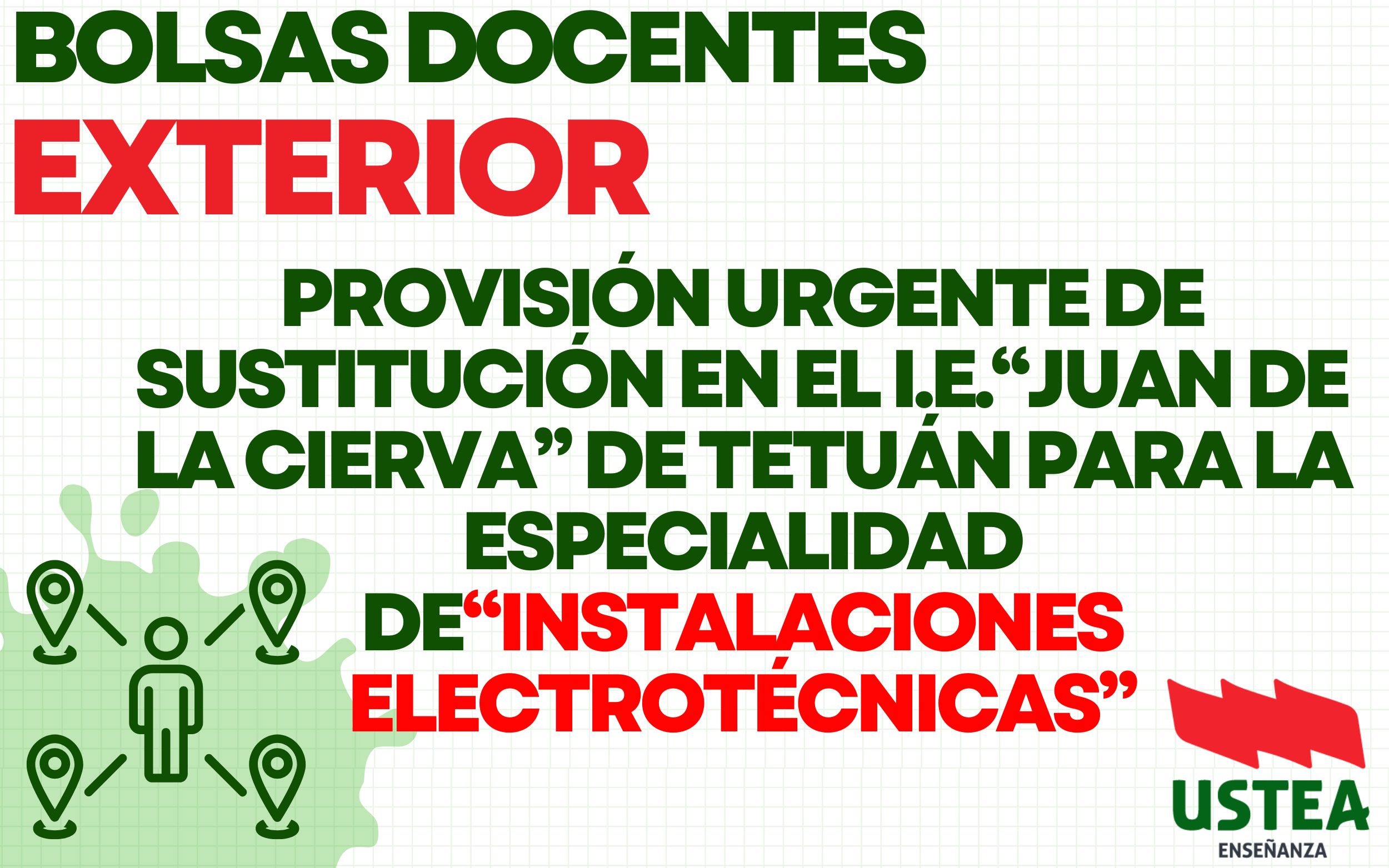 La Consejería de Educación precisa cubrir urgentemente una sustitución para impartir docencia en la especialidad de Instalaciones Electrotécnicas(Cuerpo de Profesores de Enseñanza Secundaria, de grupo A1) en el I.E. “Juan de la Cierva” de Tetuán.