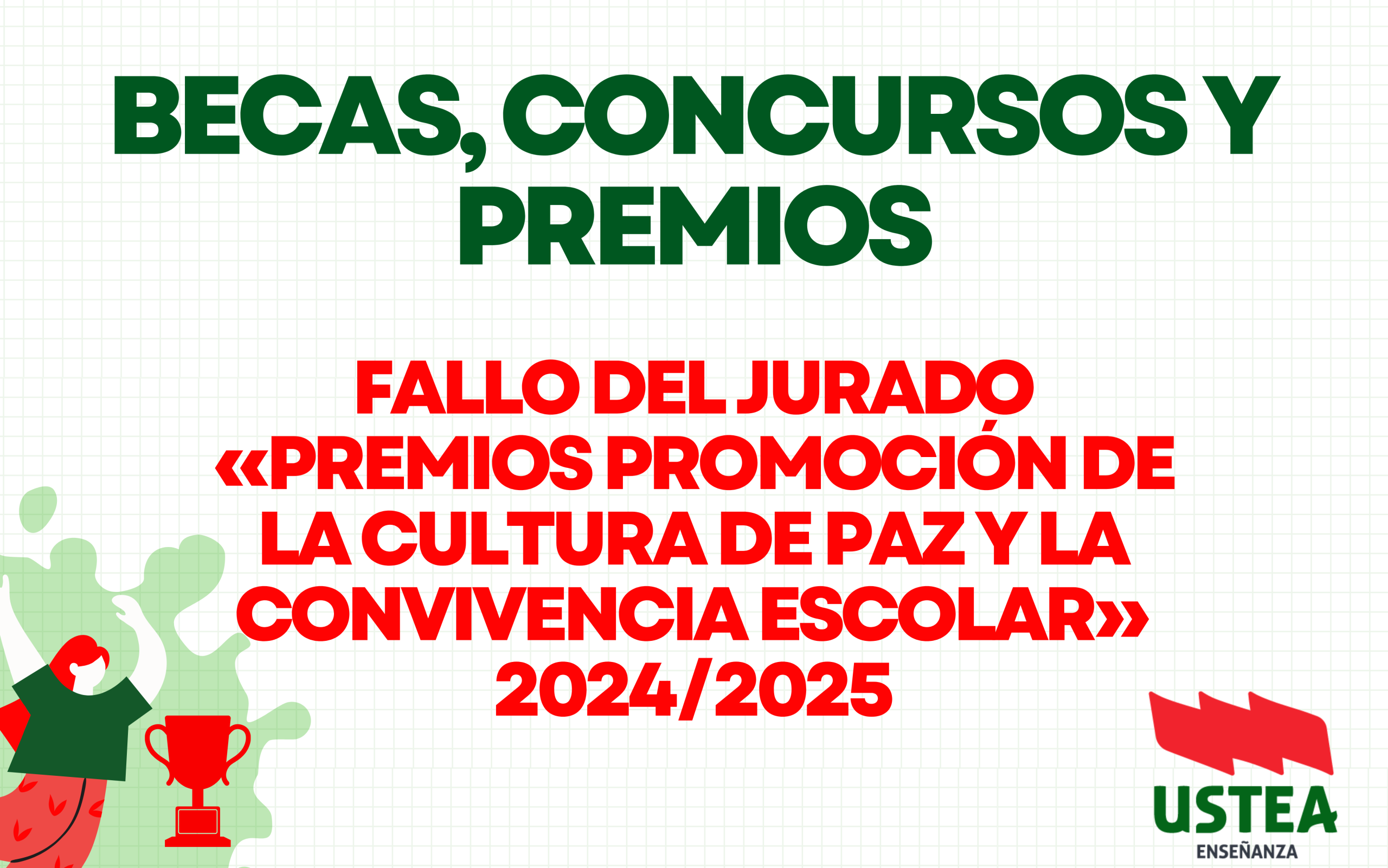 Desde USTEA Enseñanza informamos de la publicación en el Boletín Oficial de la Junta de Andalucía (BOJA, número 234 del 4 de diciembre de 2025) de la Resolución de 28 de noviembre de 2025. Esta resolución hace público el fallo del Jurado de la convocatoria de los Premios Anuales a la Promoción de la Cultura de Paz y la Convivencia Escolar en Andalucía, correspondientes al curso escolar 2024/2025.