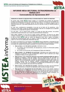 En primer lugar, desde USTEA hemos exigido a la Consejería que explique las garantías jurídicas que posee para sustentar esta convocatoria, o bien si lo fía todo a la vía Decreto-Ley apuntada por el Ministerio el pasado viernes. En este sentido, la Consejería asegura que el Decreto de OEP 2017, que estará publicado en torno al 4 de abril, incluye un informe jurídico al respecto.