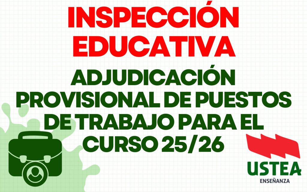 Inspección educativa. Adjudicación provisional puestos de trabajo para el Curso 2025/26