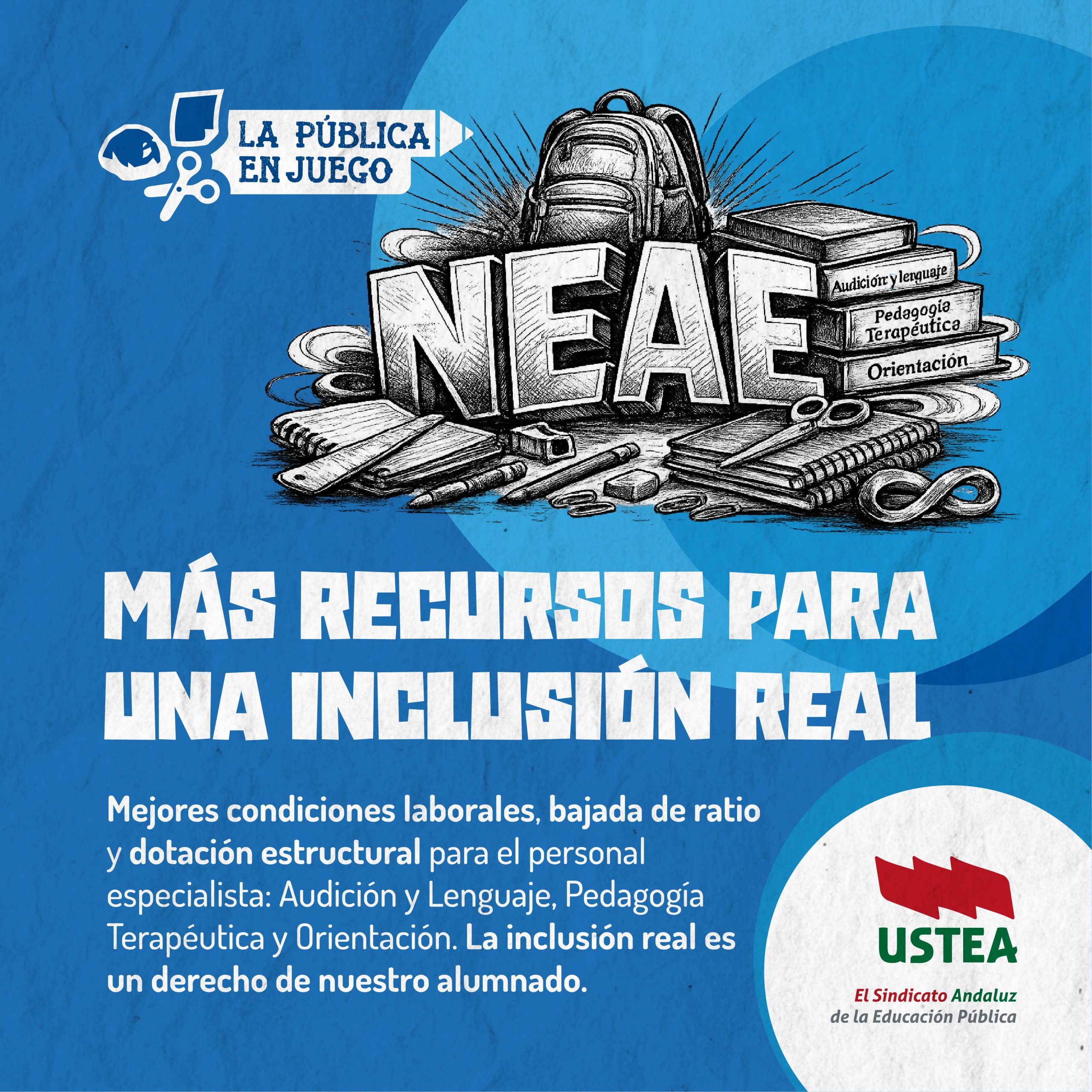 Desde USTEA volvemos a alzar la voz en defensa de una educación pública verdaderamente inclusiva, que garantice el derecho del alumnado con necesidades específicas de apoyo educativo (NEAE) a una atención adecuada, digna y de calidad.