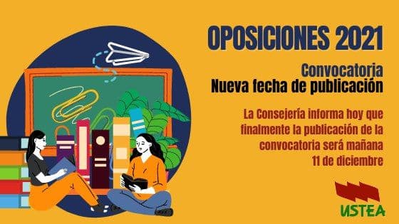 La Consejería nos informa de que la fecha de publicación de la convocatoria de oposiciones saldrá mañana, día 11 de diciembre