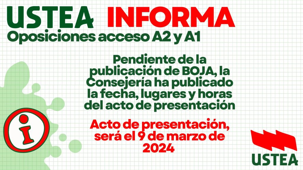 A efectos informativos, pendiente de la publicación de BOJA, la Consejería ha publicado la fecha, lugares y horas del acto de presentación del procedimiento selectivo convocado por Orden de la Consejería de Desarrollo Educativo y Formación Profesional, de 9 de noviembre de 2023.