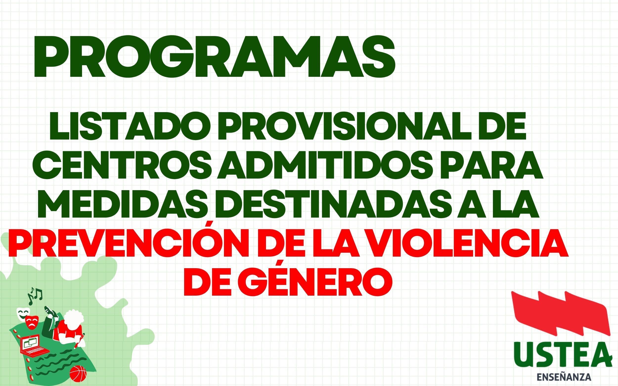 PLANES Y PROGRAMAS: LISTADO PROVISIONAL DE CENTROS ADMITIDOS PARA MEDIDAS DESTINADAS A LA PREVENCIÓN DE LA VIOLENCIA DE GÉNERO