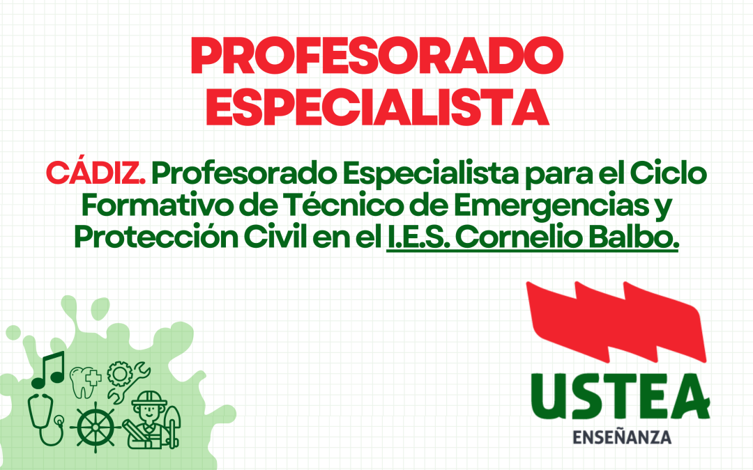 Convocatoria Pública de listas de Ampliación del Puesto de Profesorado Especialista para el Ciclo Formativo de Técnico de Emergencias y…