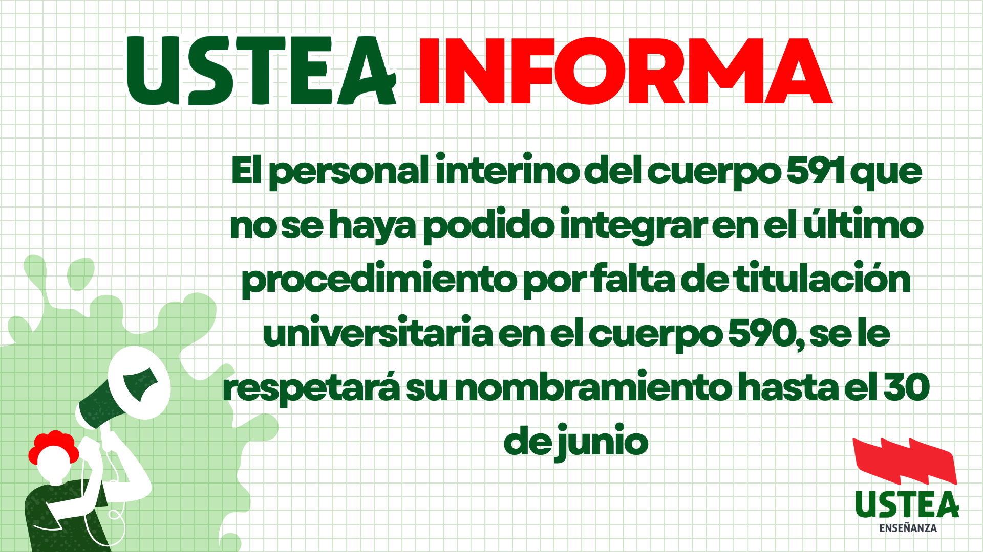 USTEA INFORMA. El personal interino del cuerpo 591 que no se haya podido integrar en el último procedimiento por falta…