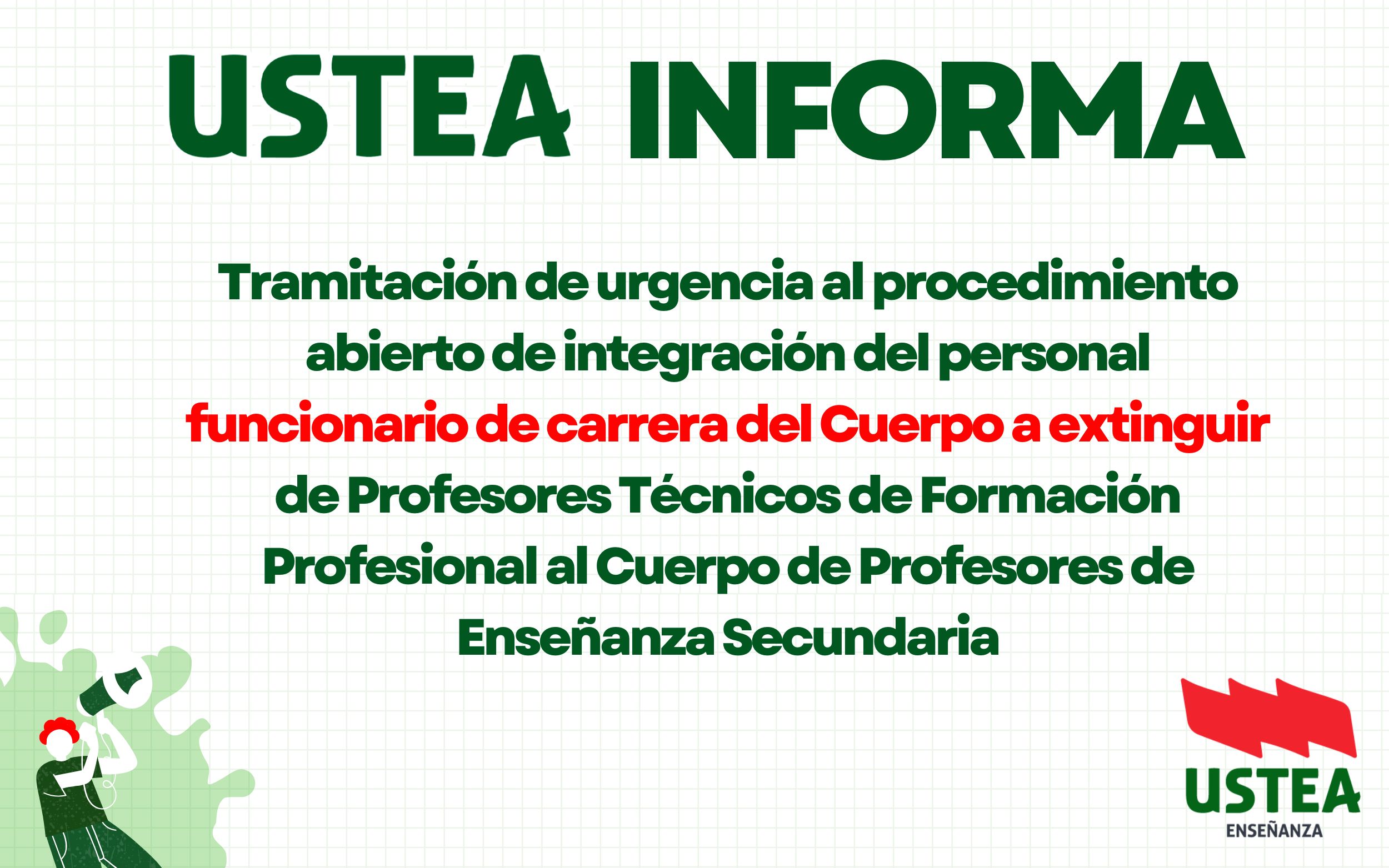USTEA INFORMA :Tramitación de urgencia al procedimiento abierto de integración del personal funcionario de carrera del Cuerpo a extinguir de…