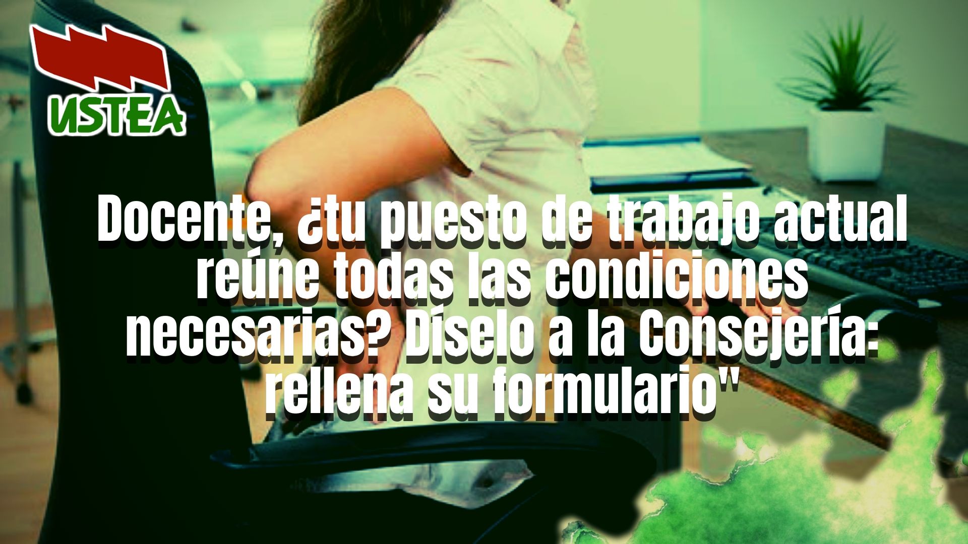 Desde USTEA consideramos que la administración viene mostrando un déficit importante en materia de salud laboral, por lo que es fundamental que podamos exigir con garantías el cumplimiento de la Ley en esta materia. Si le dejamos claro a la Consejería cuáles son los riesgos a los que estamos sometidos tendrán menos excusas para no cumplir con sus obligaciones.