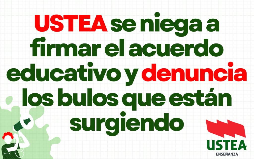 USTEA defiende una escuela pública dotada de recursos estables, inversión sostenida, plantillas suficientes y condiciones laborales dignas. Las medidas recogidas en el acuerdo son insuficientes y carecen de carácter estructural. Firmar este acuerdo implica conformarse con lo mínimo e hipotecar cualquier avance real durante los próximos cuatro años bajo el gobierno del Partido Popular, renunciando así a una mejora profunda y necesaria del sistema educativo público andaluz.