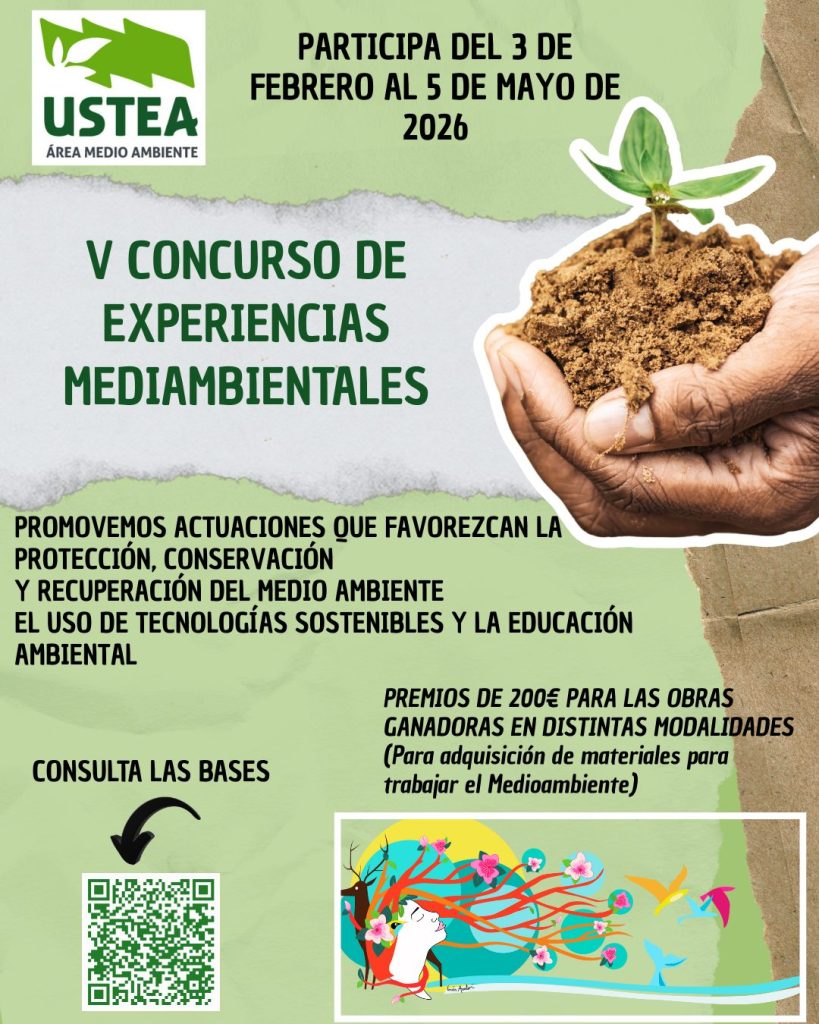Desde USTEA, estamos llevando a cabo diversas acciones con finalidad ecologista, elaborando propuestas didácticas ecologistas que puedes consultar aquí: colaborando activamente con diversas organizaciones medioambientales así como el concurso de Experiencias Medioambientales, este año en su V edición.