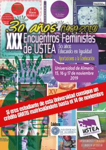 Este año celebramos el cumpleaños de nuestras primeras Jornadas Feministas, que tuvieron lugar en el año 1989 bajo el nombre de “Jornadas de Mujeres Enseñantes”. Por este motivo, el Espacio Feminista de USTEA ha querido conmemorarlo con una edición especial de nuestros actuales Encuentros Feministas, en los que se retoman los objetivos de aquel primer encuentro: intentar, a través del debate y la toma de conciencia desde la óptica del feminismo y la coeducación, hacer posible un mundo mejor sin opresiones para todos y todas, una sociedad más igualitaria, más respetuosa con la diversidad humana y más libre. Son las raíces que han dado y darán sentido siempre al Espacio Feminista de USTEA.